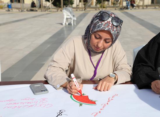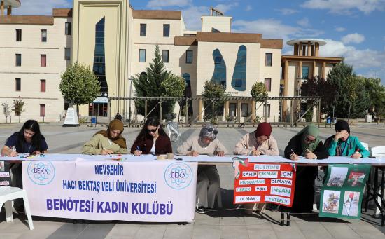 Nevşehir Hacı Bektaş Veli Üniversitesi (NEVÜ) öğrencileri “Filistinli Çocuklar İçin Çiz” etkinliğinde, çizim ve mesajlarla Gazze’de savaş mağduru çocuklara destek vererek barış, adalet ve insan hakları çağrısında bulundu.